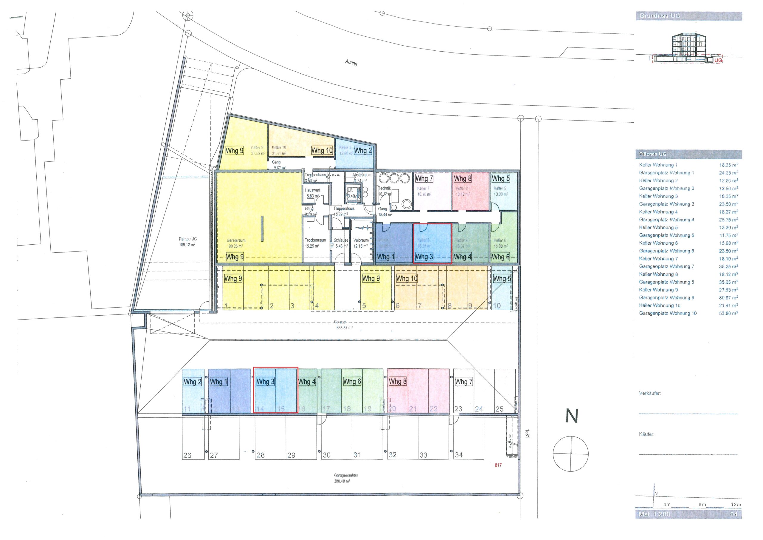 Im Untergeschoss ist ein gemauerter Einzelkeller zugeordnet. In der Tiefgarage können sind zwei Parkplätze (mit Stromanschluss) der Wohnung zugeordnet.