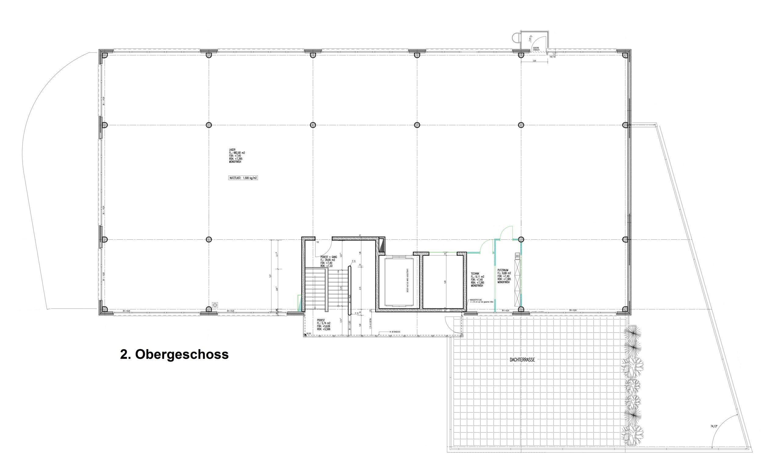 Ein Warenlift ist vorhanden. Eine praktische Rampe steht für LKW’s bereit. Die einzelnen Geschosse weisen unterschiedliche Raumhöhen auf, Untergeschoss ca. 2.30 m, Obergeschosse zwischen ca. 3 m bis 4 m. Das 2. Obergeschoss verfügt zusätzlich über eine grosszügige Dachterrasse mit rund 275 m².